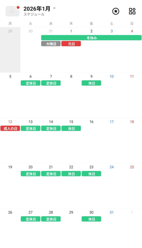 1月は年末年始の休日と、後半に外部での経営合宿が入っているため出勤日数がやや少なくなっております。